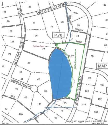 The appropriate way to access the lake is via the open area located on Whitefield Road. Only a portion of the shoreline is open to RGCA members and their guests (see illustration). Please do not